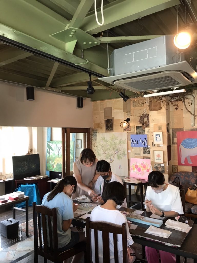 お好きな色で自由に押して、カードや布小物を作ってお持ち帰りください!